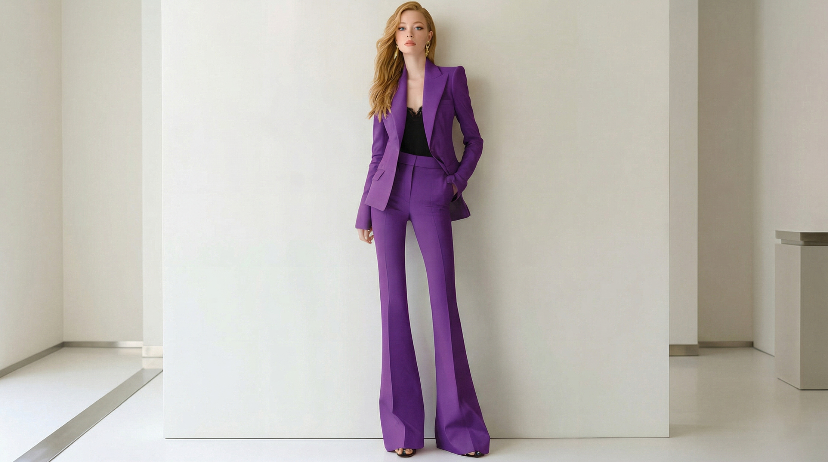 Una Una Purple Notch Lapel 2-Piece Women's Flare Suit Set