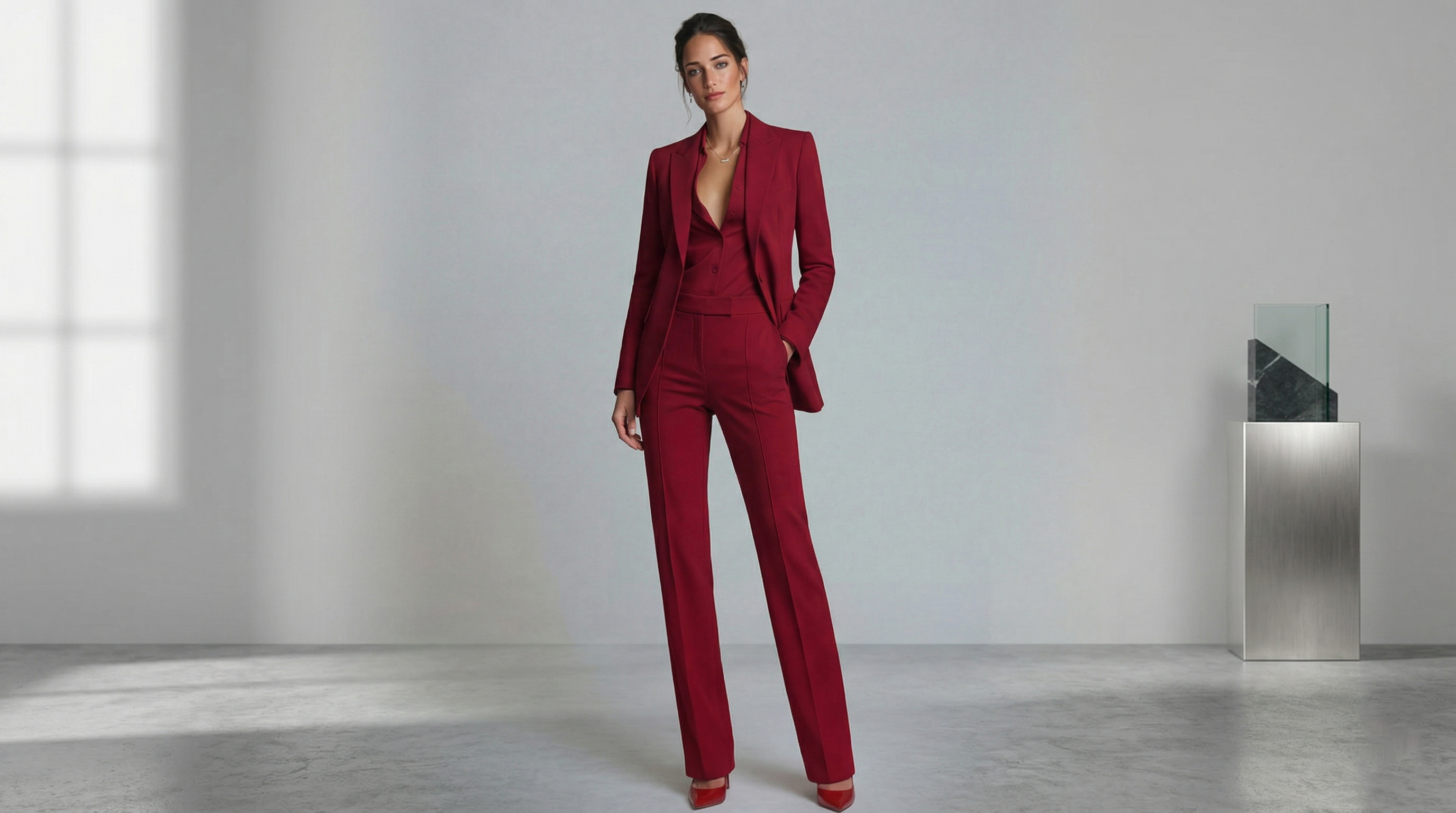 Una Una Burgundy Notch Lapel 2-Piece Women's Work Suit Set